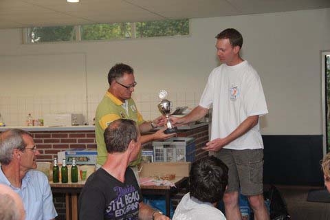 Na afloop van de vliegdag was er een gourmet met een ongekende opkomst van 33 leden inclusief aanhang. Tijdens dit gourmet heb ik de wisseltrofee van de SpiritCup uitgereikt aan de winnaar: Eric Velthuizen. Voor hem een goede afsluiting van het seizoen gezien zijn pech met zijn F3B model Cobra.